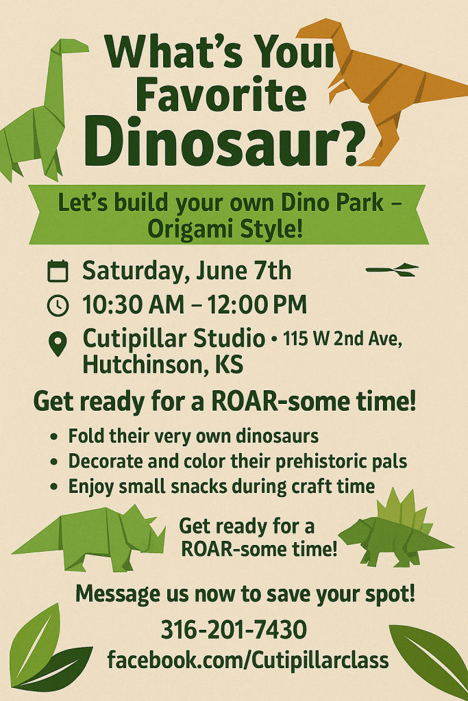 Location: Cutipillar Studio – 115 W 2nd Ave, Suite F, Hutchinson, KS